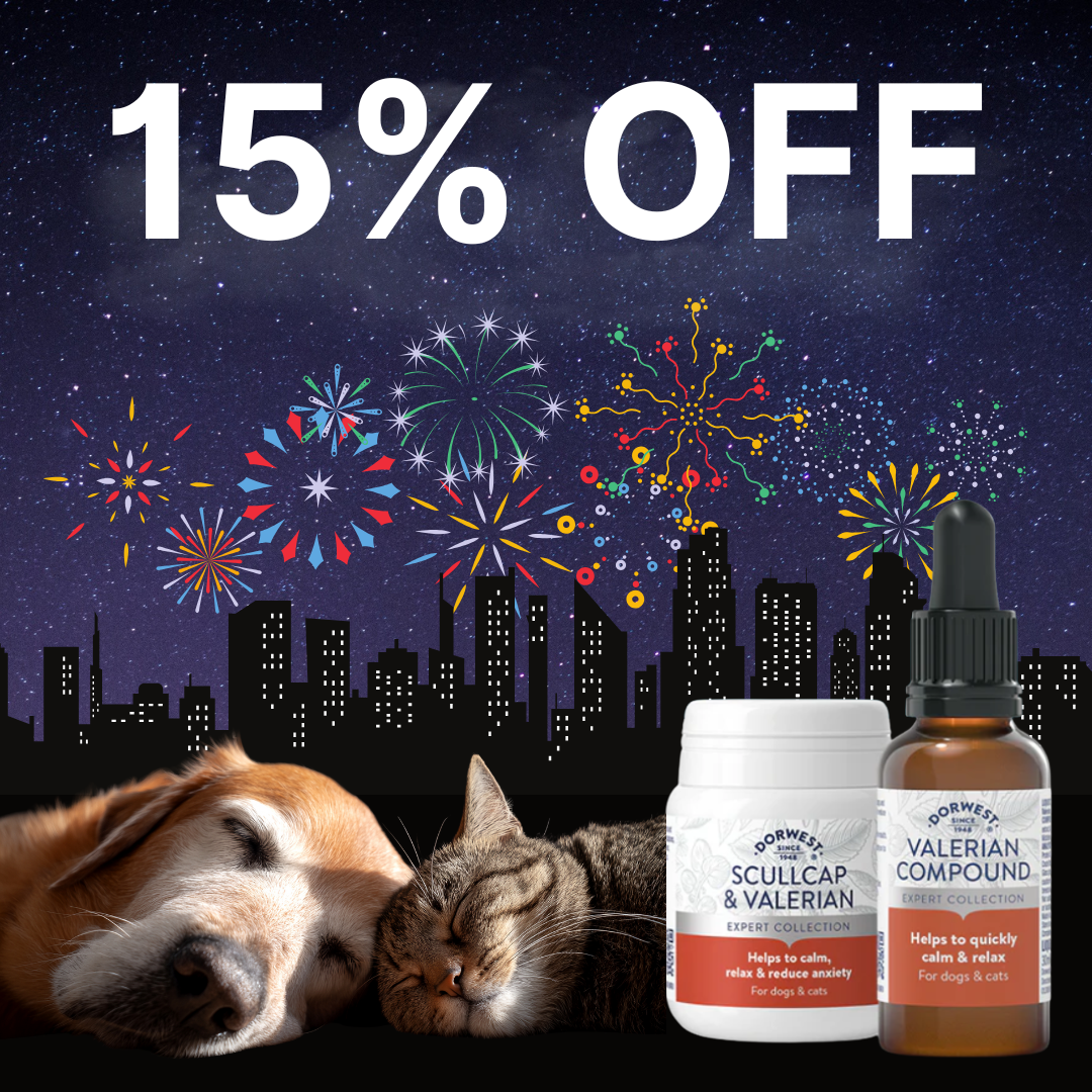 Help your pet stay cool, calm and collected with 15% off Dorwest Scullcap & Valerian Tablets and Valerian Compound. Natural support for stress, fireworks and anxious moments.