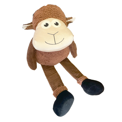 Introducing our super sized Cuddle Boss, the perfect playmate for your furry friend who craves larger-than-life fun and cuddles. This adorably oversized monkey plush toy combines the charm of a monkey with its impressive size and promising hours of entertainment and company for your furry friend. Crafted from high quality, ultra soft plush material, this toy is perfect for providing your dog with snuggly and comforting companion during relaxation time. Hidden within this super sized bunny is a squeaker that adds an extra layer of excitement and engagement to playtime, keeping your dog entertained for longer.