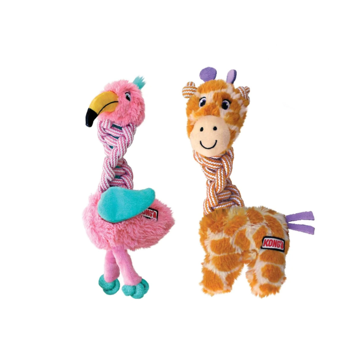 KONG Knots Twists’ long braided neck satisfies thrashing instincts with an irresistible braid of durable cotton rope dogs love to chew. Squeaker keeps play going while minimal stuffing means easy cleanup for an instinct-satisfying pal that’s both soft and durable. Plus, chewing on rope helps clean teeth.