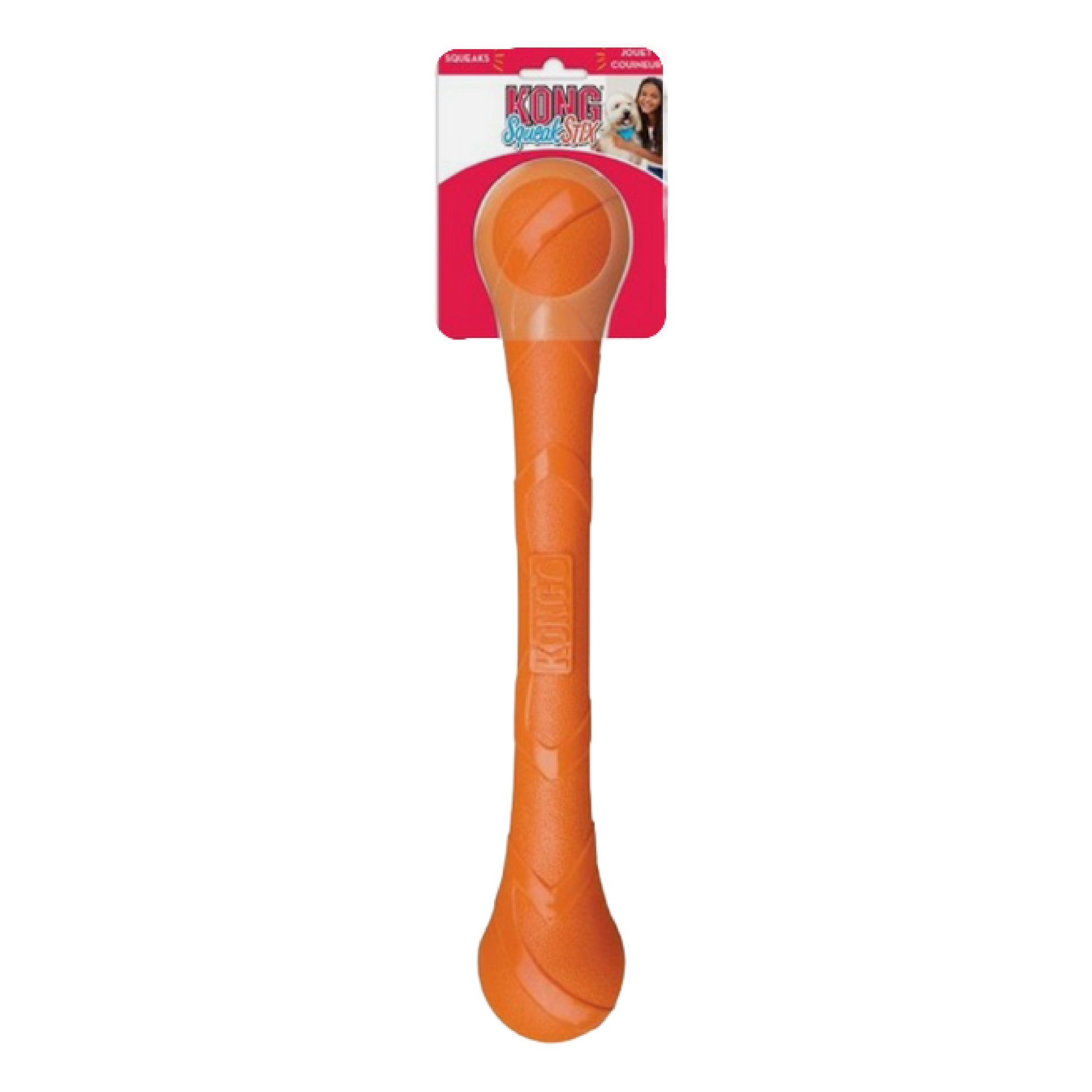 KONG SqueakStix is an extra-long and durable, fetch and tug toy that’s provides a safer alternative to wooden sticks. This rugged toy twists and flexes for dynamic tugging, with safely rounded edges and dual squeaker zones for double the fun. KONG SqueakStix have a big bounce for irresistible unpredictable action and continues to squeak when punctured all adding up to long-lasting fun.